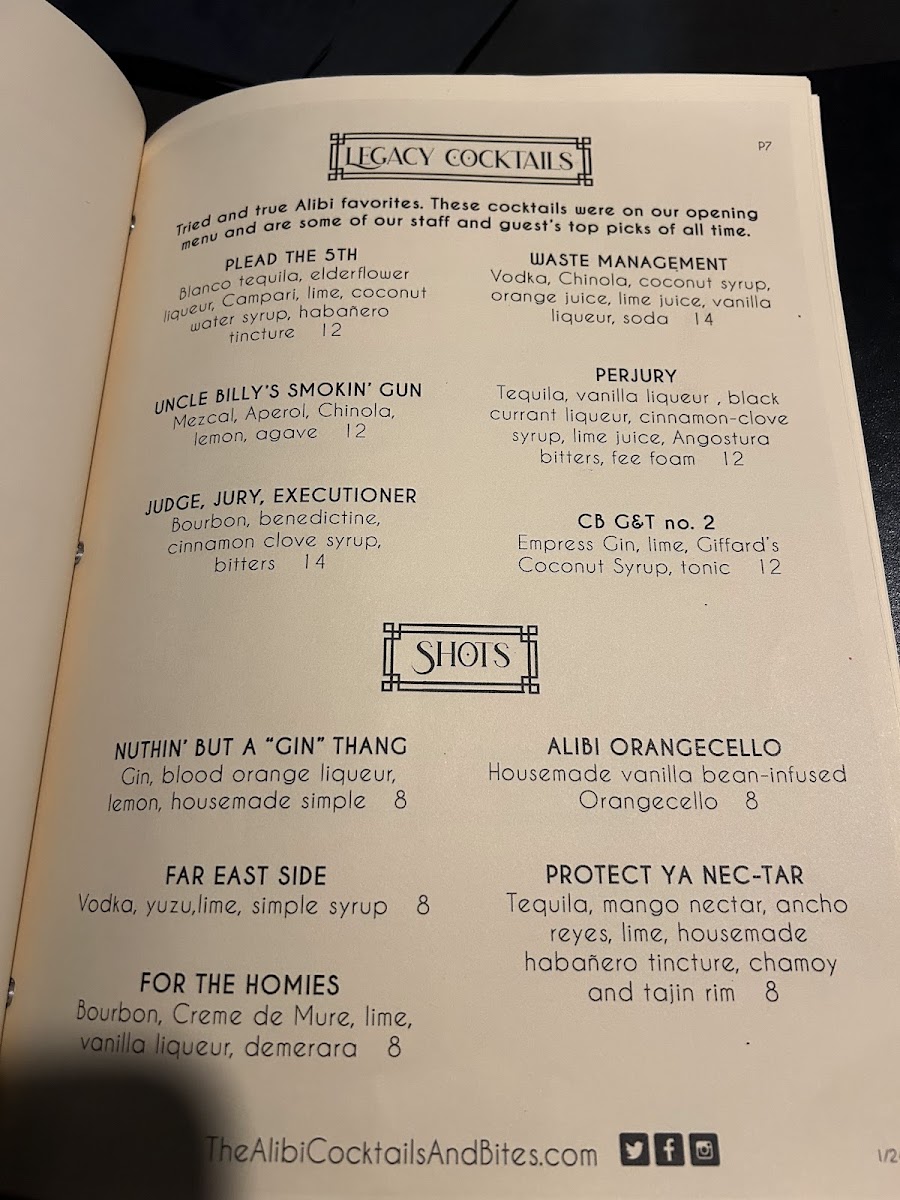 Welcome to The Alibi Cocktails & Bites, a hidden gem nestled at 231 Minutemen Causeway, Cocoa Beach, FL. This vibrant locale is not just a restaurant; it’s a sensory experience that marries exquisite mixology with delectable bites. With a chic and intimate atmosphere reminiscent of a 1930s speakeasy, The Alibi invites you to unwind and indulge late into the night—open until 1 or 2 AM.